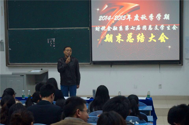 2015年1月15日中午12:40分,在B209教室召开了2014—2015年度秋季学期财税金融系第七届团总支学生会期末总结大会。出席本次会议的有财税金融系党支部书记祝刚同志、学生党支部书记李虹同志及团总支学生会的干部们。