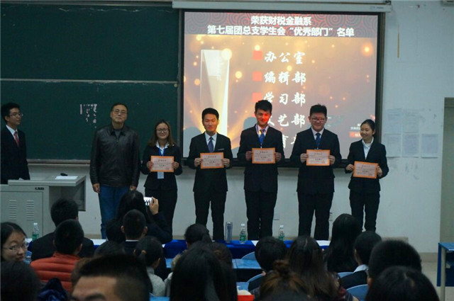 首先,由财税金融系学生会主席熊思远进行了这学期财税金融系开展各项活动的汇报与学生工作的总结。并揭晓了秋季学期“优秀部门”的名单。他们分别为:办公室、编辑部、文艺部、学习部、体育部这五个部门。这些优秀的部门起到了很好的带头作用,以实力赢得了此项殊荣。