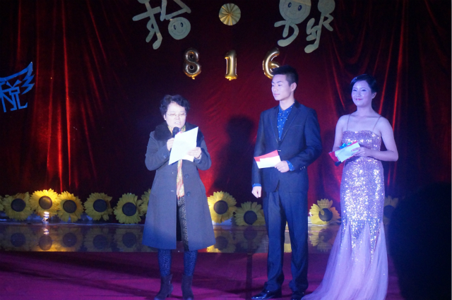 接着,主持人邀请了黄吉秀同志为本次晚会致辞。黄院长对即将参加顶岗实习的大三学子寄予了深深的祝福,对所有任课老师表示感谢,并祝愿本次晚会圆满成功。致辞完毕后,由黄院长抽取了现场的两名幸运观众,并由礼仪小姐送上了礼物,使得晚会现场气氛高涨。