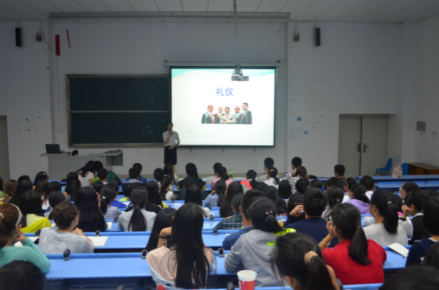最后,我们请出了一位“神秘嘉宾”,第六届学习部部长汪敏为新成员演示了人际交往中的礼仪。汪敏学姐用清晰的讲解兼优雅的展示,为新成员上了一堂丰富精彩的礼仪课程。