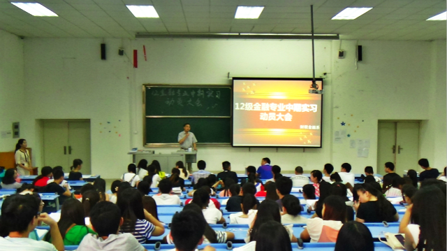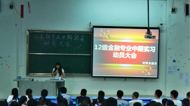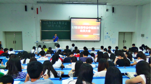 然后,由12级金融专业的辅导员向同学们讲解了实习工作中应该注意的事项,以及实习报告表的具体填制方法。