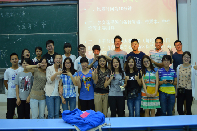 为了锻炼同学们的职业技能,增强同学们对未来就业的自信。我系于2014年5月22日7点在b110举行了传票比赛。此次比赛也受到了全院同学的积极响应,总共有五百多个选手参赛。大会伊始,由主持人宣读比赛基本规则和注意事项。之后比赛正式开始,选手们根据主持人给出的规定以及自己座位上发的纸上提示开始操作,大家都争分夺秒地敲击着按键,手和眼也配合的默契十足,向大家展现出了自己熟练的传票算技巧。也有些许同学由于紧张而导致翻错页,打错数的情况,但他们丝毫没有放弃,仍以饱满的热情完成了他们的比赛 。
