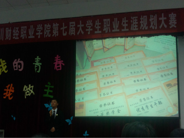 在演讲展示规划的过程中,每一位选手都认真通过对职业环境的分析、自我认知的swot分析以及霍兰德职业测评分析后确立了自己的目标职业,并详细制定了出职业生涯中具体的短期、中期、长期目标和具体可行、适时连续的实施计划。选手们演讲内容积极健康,精神风貌昂扬向上,展现了财院当代学子的别样风采。比赛在观众的掌声与呐喊声中继续进行,其中我系的几位选手也陆续上场,他们凭借精彩的讲解展现了自身的实力与魅力,一步紧扣一步的将自己的未来规划呈现给大家,在此起彼伏的掌声中结束了自己的演讲。之后还接受了评委们的统一提问与点评,在此环节中我系选手们的表现也毫不逊色,自信大方的回答了评委们提出的各种问题,展现出了他们对自身职业规划的坚定与热情,并得到了评委们一致的好评,也把比赛的气氛推向了高潮。