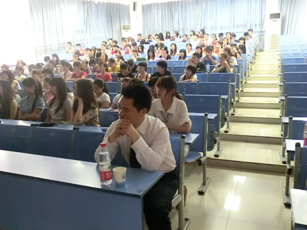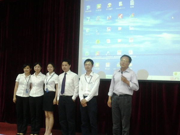 在播放了企业宣传片后,金穗公司省公司培训产业部培训教师刘海军老师为同学们介绍了公司发展历史、现状、发展态势等概况,重点介绍了公司机构设置、岗位设置、人员要求。接着刘老师就校企合作订单培养的相关事宜给学生们进行了详细的讲解,包括工作环境、工作时间、工作报酬、福利待遇、公司文化和订单班的选拔条件、岗位设置、管理模式、考核办法、激励机制等。随后,金穗公司优秀员工肖雪与大家分享了自己的入职经历并激励大家继续为自己的事业而努力。最后,金穗公司员工为大家在工作相关事项方面提出的问题进行了细心地解答。
