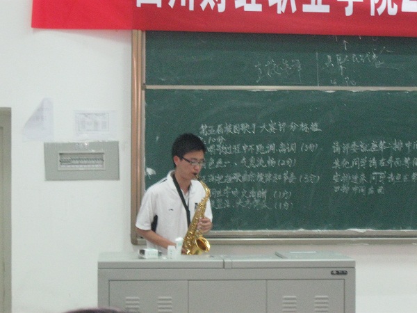 此次歌手大赛以两人一组的形式进行比赛,方式为现场清唱。评委老师根据选手现场表现、歌曲演唱流畅程度、对节奏的把握等方面对选手进行打分,总分为10分。所有参赛选手都经过精心准备,充分展示着他们的青春活力,比赛中掌声连连,阵阵喝彩。我系陈明霄同学表演的萨克斯演奏得到评委的好评,也展示了我系学子多才多艺的一面。