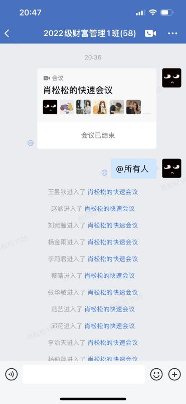 全班同学积极配合此次班会的召开,以极快的反应速度在2分钟内全部参会,反映出我班对学院疫情防控工作的支持与配合,我班将继续努力,严格遵守学院要求,不断提高政治站位,为学院疫情防控工作贡献出积极力量。