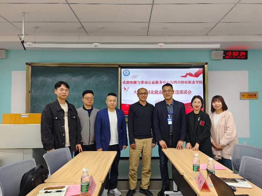 董中垒书记对成都唤醒与带动公益服务中心一行嘉宾的到访表示热烈欢迎,我院历来十分重视学生创业就业方面的问题,积极鼓励大学生参与“创新创业大赛”“挑战杯”“互联网+”等比赛,希望通过本次合作可以推动我院学生在创业就业方面的发展。