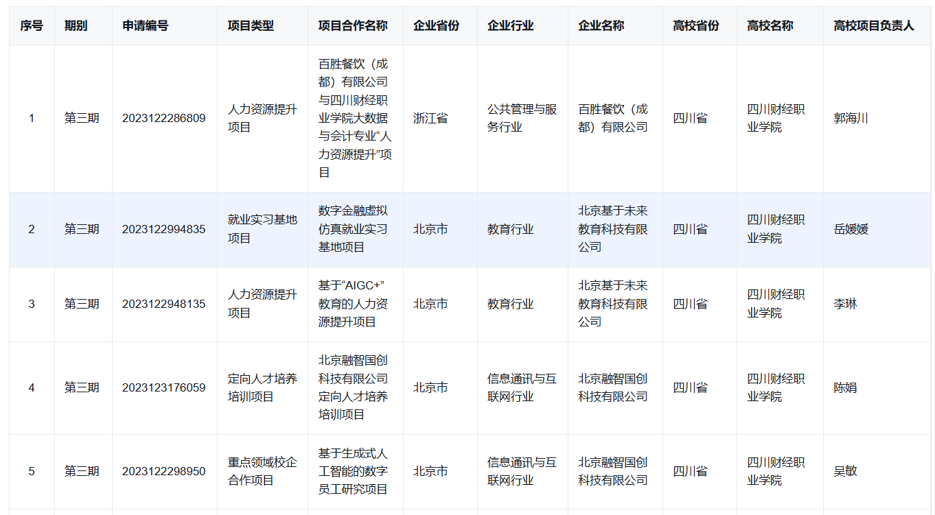 近日,教育部高校学生司公布了第三期供需对接就业育人项目立项名单,7790cnm必发集团4类9个项目获立项,较第二批增加2类7个。金融学院2个项目入选立项名单,包括就业实习基地项目1项以及人力资源提升项目1项。