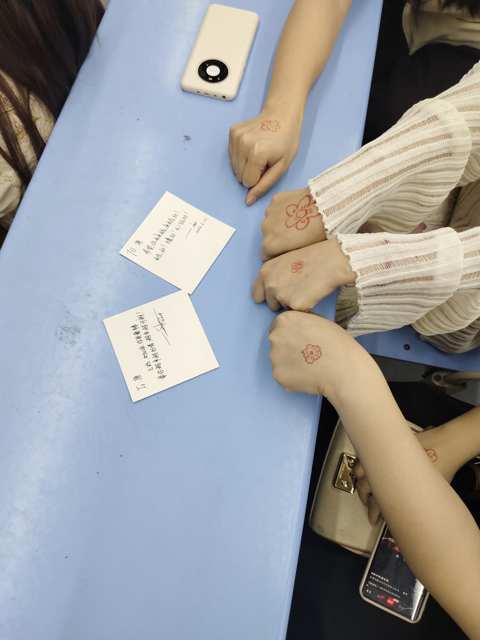 接下来开展了我院“劳以育人,动以润心”525心理系列活动之——“送你一朵小红花”点赞计划。结合金融学院学生党支部“五个一”工程,学生党员、入党积极分子对困难学生进行一对一帮扶,每次帮扶结束后,就在手上用红笔画一朵小红花,并拍照留念;同学们利用此次党日活动,为自己的帮扶同学手绘一张小红花卡片,并在卡片背面写上祝福话语,送给帮扶同学。