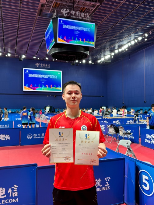 运动是生命的源泉,体育是强国的根基。2024年5月24日―26日金融学院学子彭雨、李常杰在2024年四川省大学生乒乓球比赛中,以过硬的实力和顽强拼搏的精神,经过激烈角逐,一路过关斩将取得了优异的成绩。比赛充分展示了金融学院学子的风采及在球类竞技项目中的高水平,更快、更高、更强的体育精神值得所有金融学院学子学习。