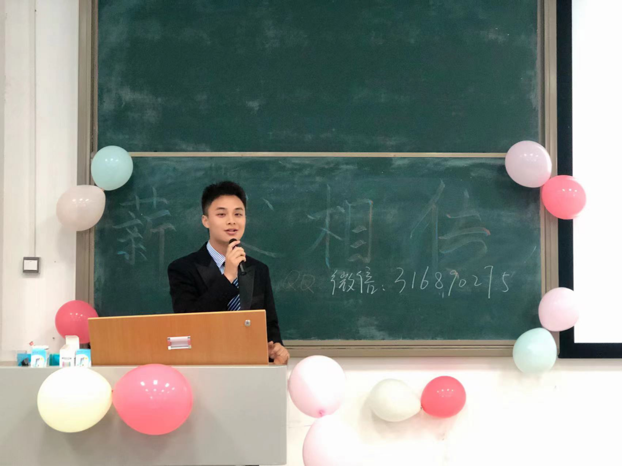 紧接着是原财税金融系2018级学生,曾任财税金融系第十二届团总支学生会主席,现就读于四川师范大学的欧阳俊棋学长进行经验分享他以“曾经卑害羞的抑郁少年,现在照亮别人的有志青年”为主题讲述了从小学到大学的五个阶段用五个不同的关建词概括他的人经历。用自己坎坷又励志的经历来激励我们,愿我们不被挫折打败,不忘初心砥砺前行创造属于我们自己的精彩人生。