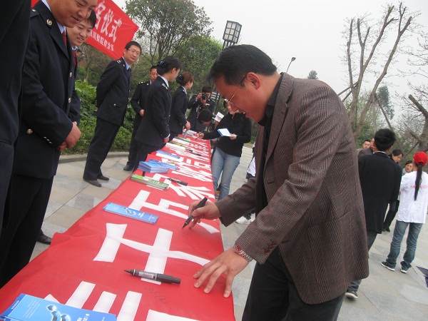 依法诚信税收,共建和谐社会。为了迎接2011年第20个全国税收宣传月的到来,继续深入宣传税收知识,我系于2011年4月12日中午12点于我院中心花园处开展了税收宣传的签字仪式。我系隆重邀请到了龙泉国税局的工作人员到学院给同学们宣传税收知识,我系系主任钟用,学生党支部书记李虹等诸位老师出席了此次签字活动。