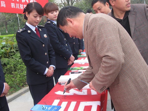 活动中,我系的志愿者们携手龙泉国税局的嘉宾一起以饱满的热情,耐心的向同学们讲解和宣传我国的税收知识。同时各位同学也积极的参与了此次签字活动,在我们准备的横幅上郑重的签上了自己的名字,了解了更多的税收知识,其中就有新的《发票管理办法》有关问题的详细解答,并且讲解了有光规定,同学们再了解了有关税收知之后,还表示在今后的生活中一定会做个合法的纳税公民。此次活动增加了我院同学对税收知识的了解,更好的促进了全民履行纳税义务。