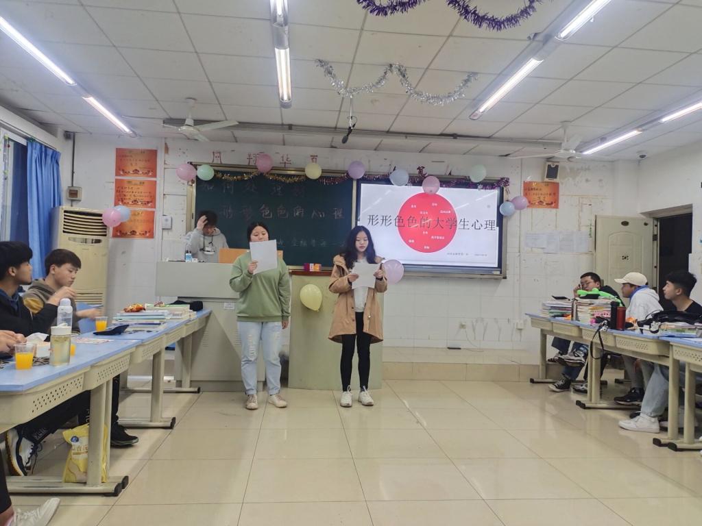 本次心理班会的主题是“如何处理好形形色色的心理”,首先以一个心理视频的形式展开班会,然后主持人再向同学们提一些问题,和说明如何自我调节面临的心理上的一些问题,最后是一些小游戏,通过小奖品来鼓励大家参与激情,从本次活动中可以看出同学们都非常乐观开朗,玩得也很开心,同学之间团结友爱。