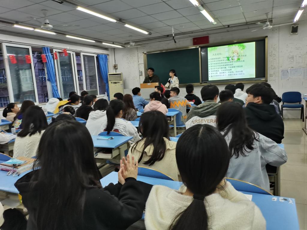 7点心理班会开始,主持人做开场白和引辞,然后播放PPT,并讲解PPT,随堂抽同学回答问题,与同学进行交流,主持人播放让人放松的音乐,最后主持人宣布此次班会结束。