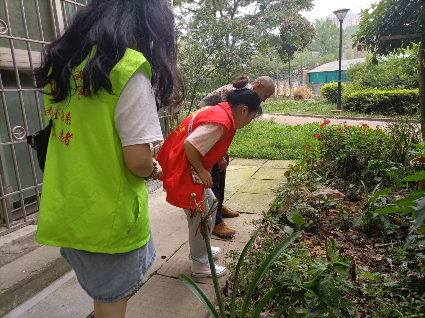 爷爷带我们看他种的花,这下同样也是种花爱好者的志愿者跟爷爷可有的聊啦!