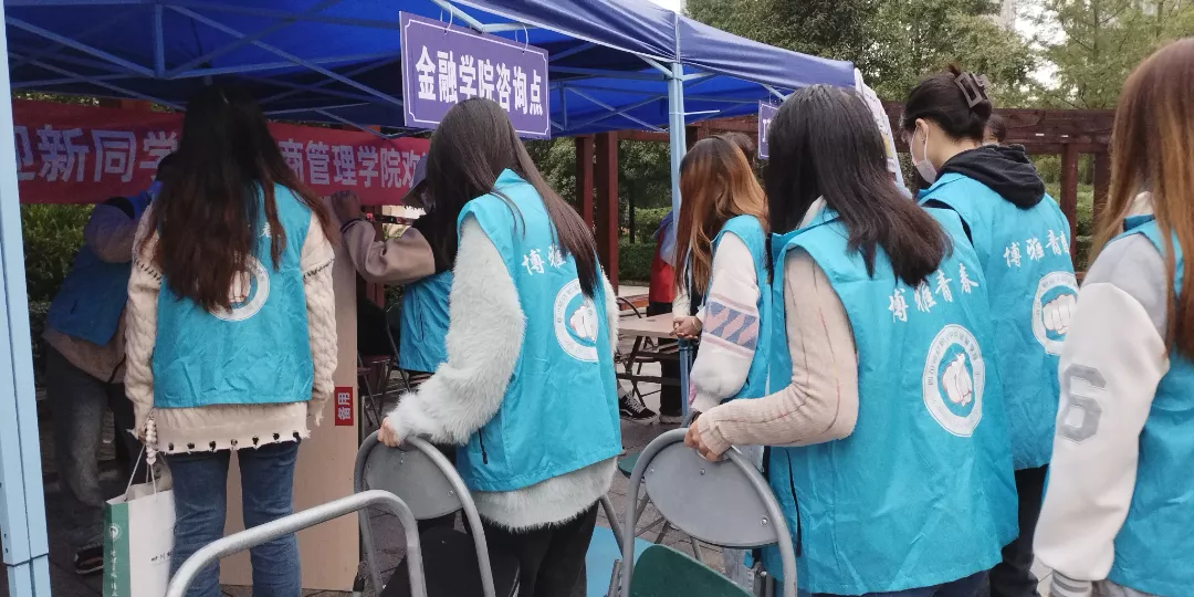 志愿者们,用灿烂的笑容和周到的服务,以心迎新,让小白菜们感受到我们金融学院的温暖。在新的学期,新的起跑线上,希望小白菜们以更加饱满的热情,更加昂扬的斗志,向着新的目标冲刺,迎接自己的大学生活。