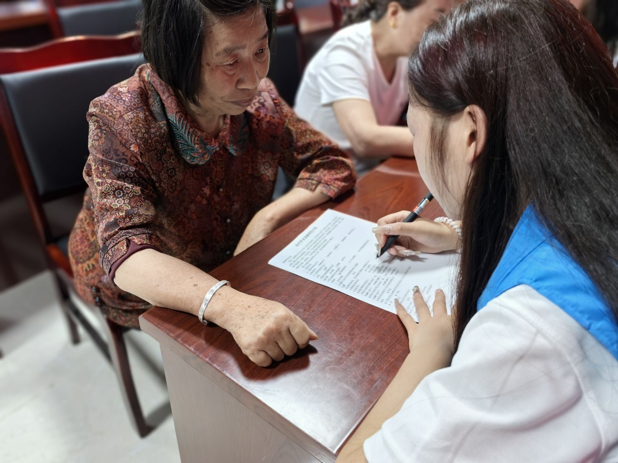 最后,为了帮助居民朋友们对养老金相关内容的了解情况,志愿者们给居民们发放了《农村养老金调查问卷》,并辅助居民们进行填写。