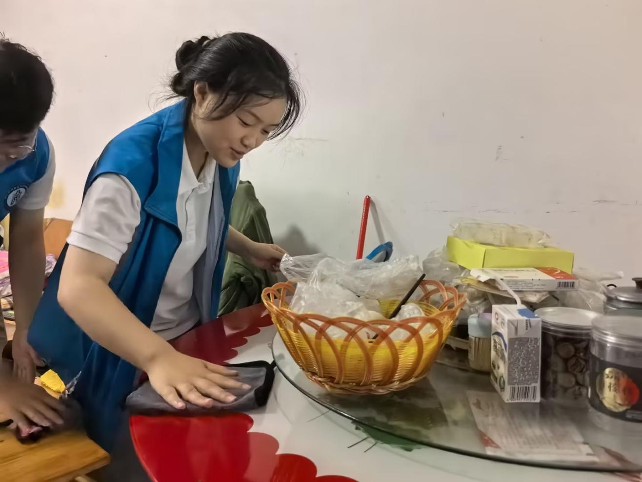 在东岳村副支书仲碧书记的带领下,实践团队先后去到了东岳村五户老人家中进行走访,对老人的日常生活进行关心并送上了慰问物资,同时志愿者们对他们的住所进行了简单的清扫。