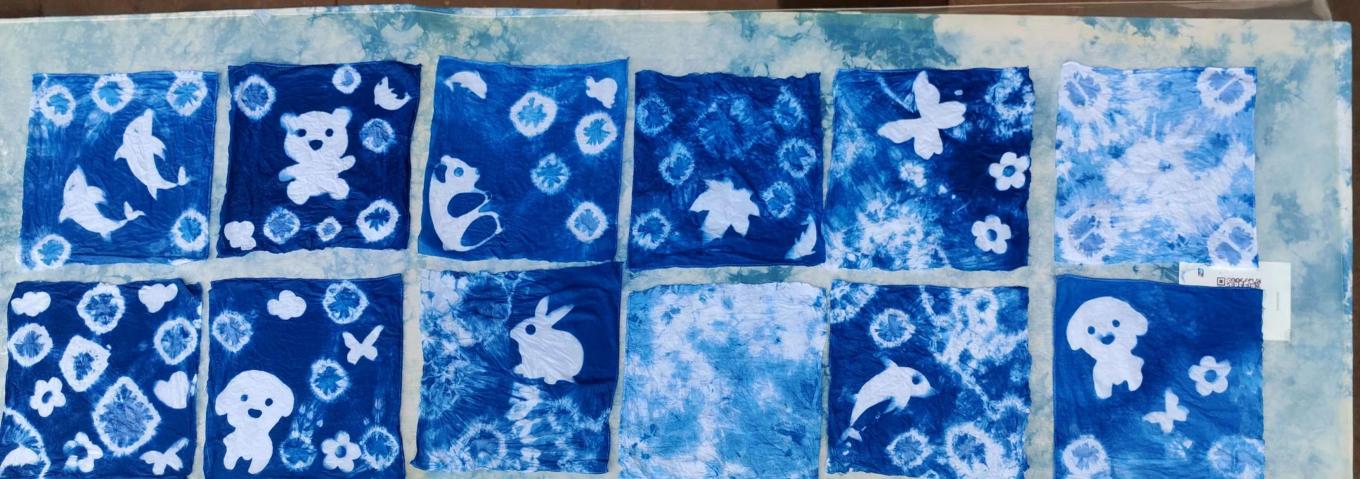 扎染作为中国民间传统的染色工艺,具有独特的艺术效果,实践团队在“锦印蓝染”扎染体验馆收获了一次别样的经历。首先由非遗传承人为大家简单介绍了扎染的文化历史,讲解了较为简单的三种工艺方法,分别为捆扎法、螺旋扎法、折叠扎法,并为大家展示了对应的成品。经过大家的精心创作,一件件精美的扎染作品在大家手中诞生,每个人都收获了满满的惊喜与成就感。