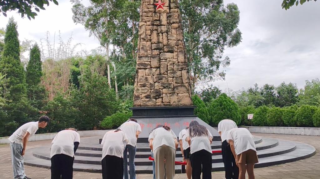 怀着对烈士们的崇敬之情,实践团队去到了成都战役烈士陵园,这里的每一座墓碑都代表着每一位革命烈士永垂不朽的爱国精神、奋斗精神和奉献精神。在如此庄严肃穆的环境下,成员们自发列队向革命英烈行鞠躬礼,以表对他们的缅怀与敬意。