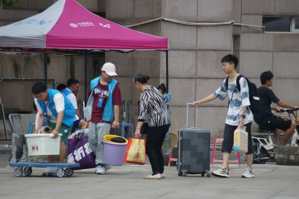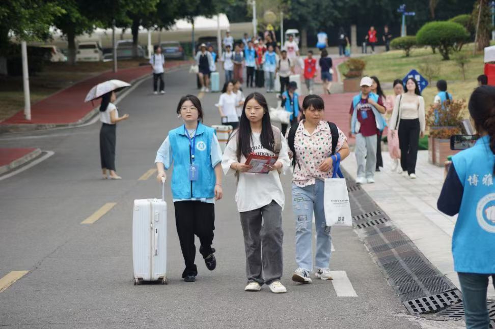 活动当天,志愿者们早早来到校园,身着统一的志愿马甲,佩戴志愿者牌,在学校的前后门、公寓、行李寄存处等地集合,准备迎接新同学的到来。在整个迎新过程中,志愿者们始终保持着高昂的热情和饱满的精神状态,耐心地解答新生及家长的疑问,引导新生完成报到手续,帮助搬运行李等。从校门口到报到点,从宿舍区到教学楼,处处都能看到她们忙碌的身影。在炎炎烈日下,“小马甲”成为校园中最亮丽的风景线。报到点处,班导生们也在紧张地忙碌着,她们认真核对新生的信息、办理入学手续,确保每一个环节都准确无误。