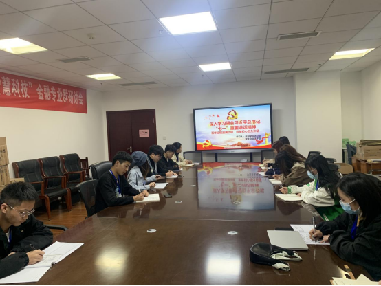 为深入学习贯彻习近平总书记“七一”重要讲话精神和习近平总书记在党史学习教育动员大会上的重要讲话精神,推动党史学习教育、“四史”宣传教育走深走实,9月22日下午,金融学院团总支学生会全体学生干部在行政楼712召开了研讨会,金融学院团总支书记、学生党支部书记徐言参加此次研讨会。
