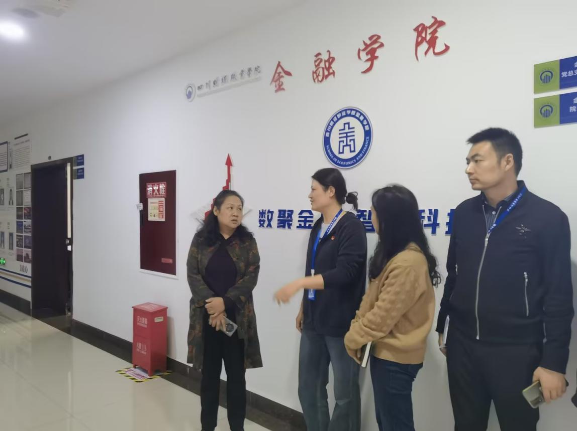 2023年11月3日上午,学院张华书记一行到金融学院指导党建和文化建设工作,金融学院副院长李琳、党总支副书记李虹、组织员陈世千等党员教师为张华书记一行人介绍了金融学院的党建和文化建设情况,并陪同参观了金融学院党建和文化建设场景。包括室内:党建会议室“红色金融”、党总支架构文化墙、博雅心苑心理关爱室;走廊:金融学院育人理念体系、各支部建设文化墙;露台:支部品牌建设博雅书院等。参观的过程中李虹老师对党建和文化建设墙的建设背景、意义为大家一一做了介绍。参观完以后,张书记对金融学院的党建和文化工作给予了高度评价。同时,张华书记还详细了解金融学院在党建工作中遇到的问题和困难,并就如何加强阵地建设提出了宝贵意见。