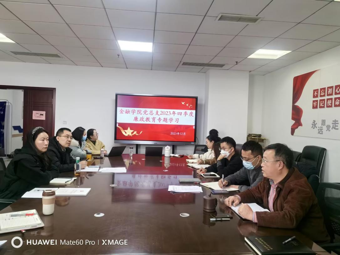 12月12日金融学院党总支开展了2023年四季度党员干部廉政专题学习,本次学习由金融学院党总支书记、院长叶剑明同志主持。