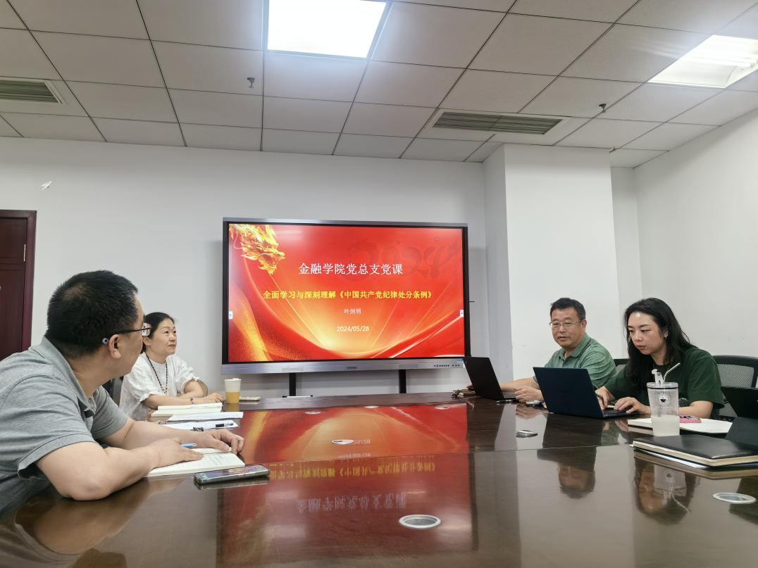 为进一步增强金融学院全体党员教师的纪律意识和政治素养,金融学院党总支书记叶剑明于5月29日为全体党员上了一堂关于全面学习与深刻理解《中国共产党纪律处分条例》的专题党课。