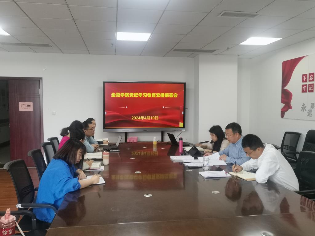 为深入贯彻落实中共中央办公厅《关于在全党开展党纪学习教育的通知》和四川省委《关于在全省开展党纪学习教育的实施方案》要求,根据省委教育工委、财政厅党组和学院党委的工作部署,金融学院于4月19日召开党纪学习教安排部署会,会议由金融学院党总支书记、院长叶剑明主持,金融学院党总支副书记董中垒,金融学院党总支副书记、副院长李琳,党总支委员会委员以及各支部书记参加了此次会议。