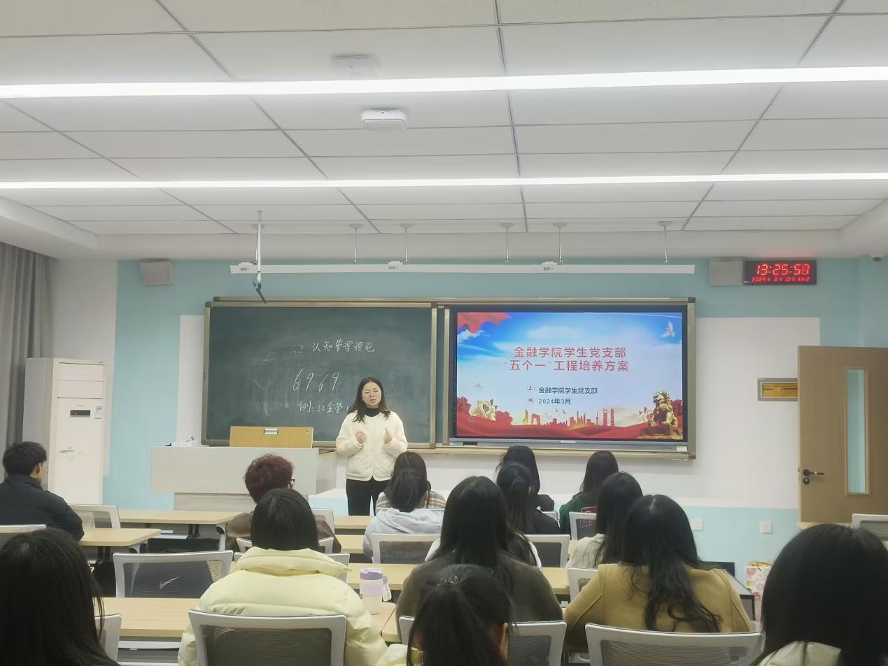 为加强学生党员发展和培养的过程化管理,提升学生党员党性修养、思想觉悟,3月12日下午13:30,金融学院学生党支部在C栋教学楼103教室召开“五个一”工程培养方案培训会,会议由学生党支部书记蒲晓玲老师主持,全体学生党员、发展对象、入党积极分子参加。