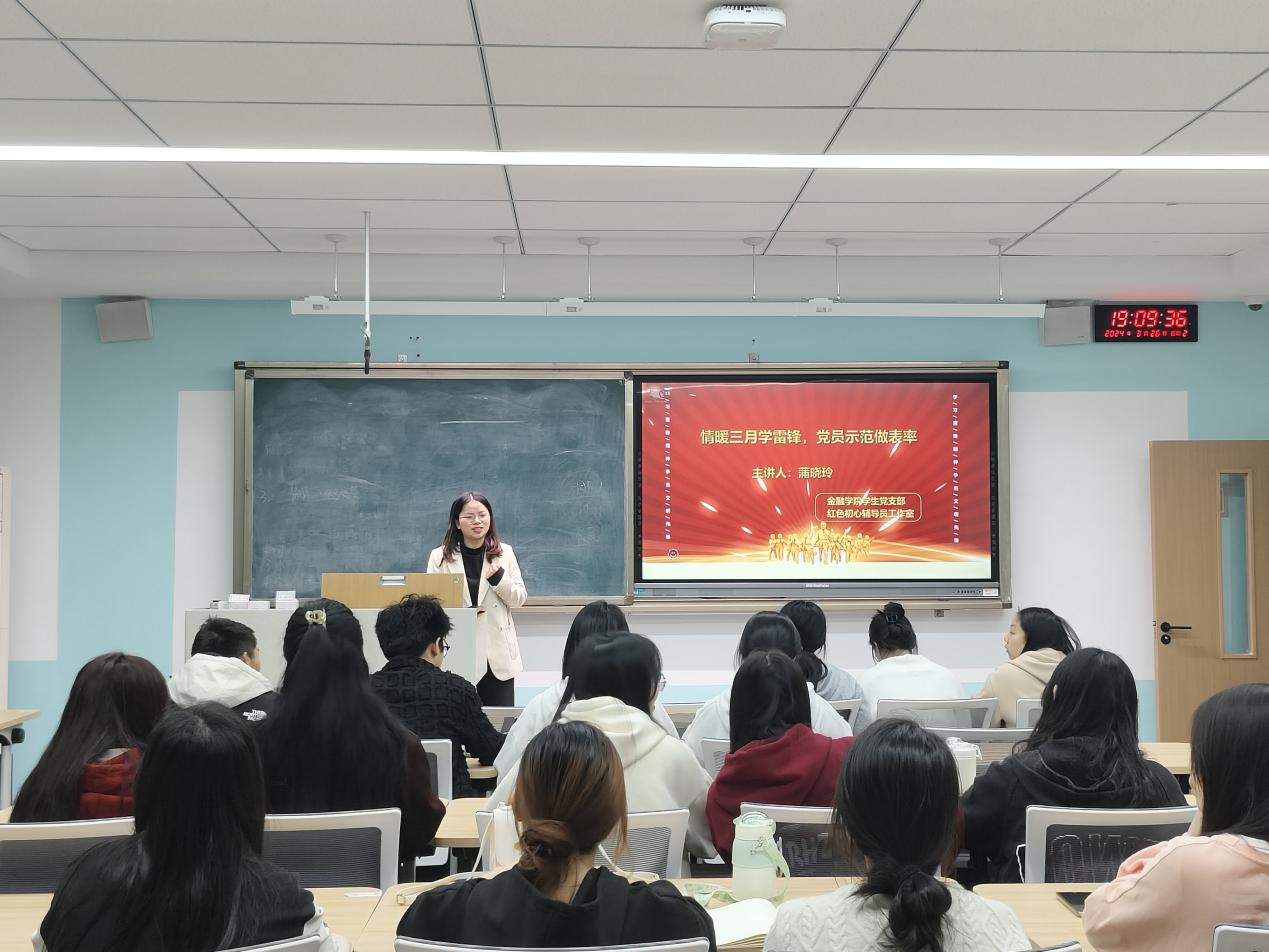 为积极践行金融学院学生党支部五个一培养工程,加强对学生党员的思想引导和教育,3月26日晚,金融学院学生党支部书记蒲晓玲老师在C栋教学楼,开展“情暖三月学雷锋,党员示范做表率”的党课活动,全体学生党员及入党积极分子参加。