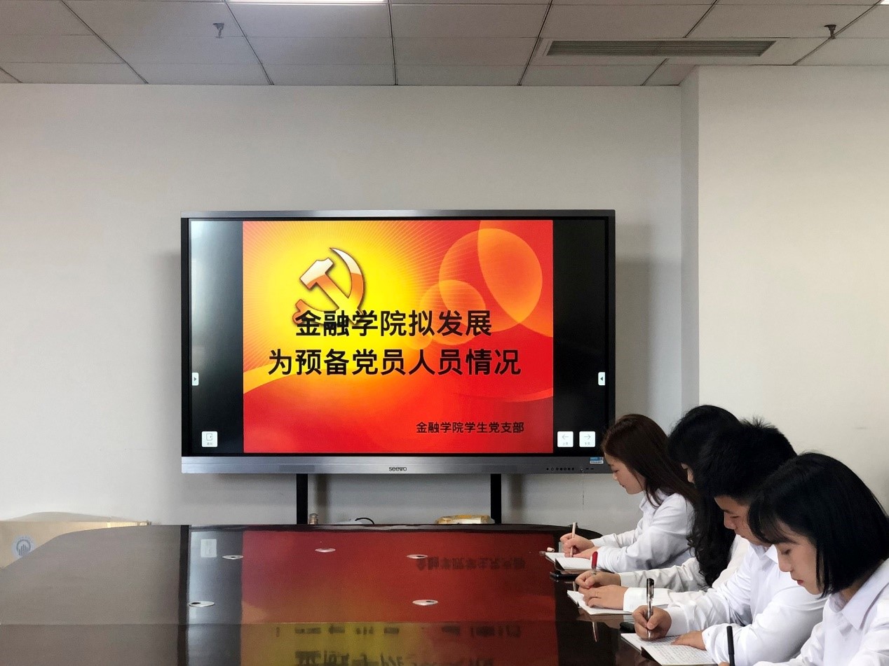 6月4日下午14:00,金融学院学生党支部在行政楼712会议室召开了金融学院拟发展为预备党员人员情况党支部大会。会议内容为讨论杨番等6位同志的积极分子转为预备党员。参加此次会议的有徐言老师、蒲晓玲老师、王灿老师及2019级第一批入党积极分子。