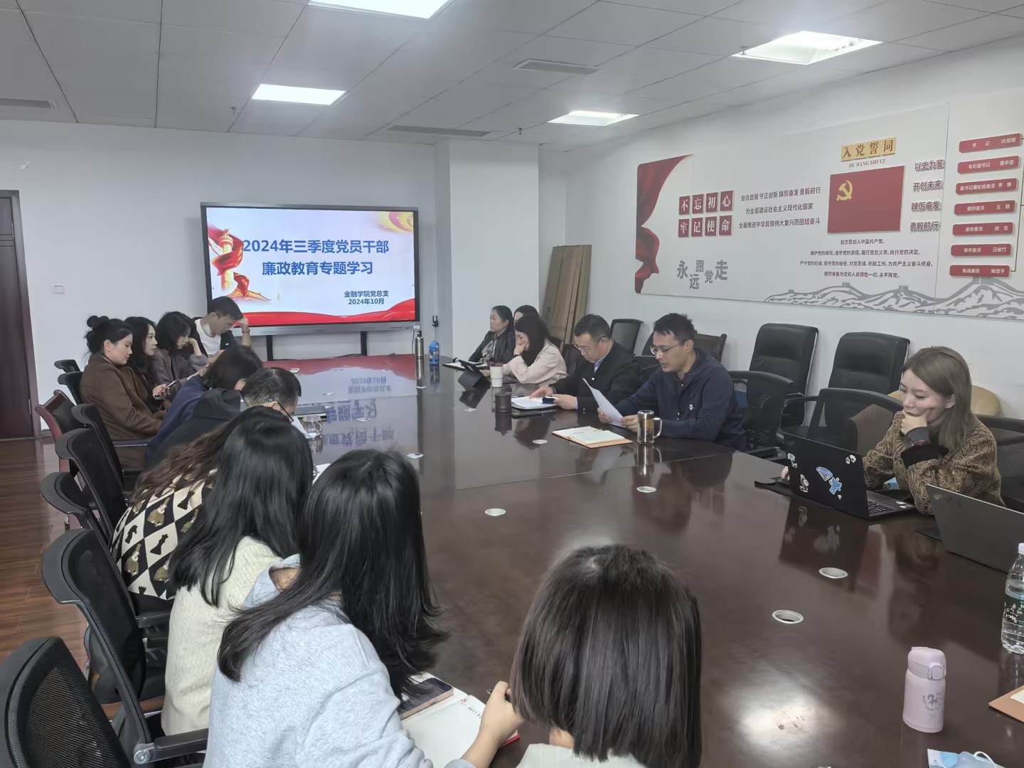 为贯彻落实全面从严治党和党风廉政建设要求,持续加强廉政教育,按照学校的安排部署,2024年10月8日,金融学院党总支开展2024年三季度党员干部廉政教育专题学习,本次专题学习由金融学院党总支书记叶剑明主持,全体党员干部参加,首先叶书记带领大家深入学习党的二十届三中全会精神。会议强调,进一步全面深化改革、推进中国式现代化是当前和今后一个时期的重要任务。全体党员干部要深刻领会改革的重要性和必要性,紧紧围绕推进中国式现代化进一步全面深化改革。同时,要坚定对中国特色社会主义的道路自信、理论自信、制度自信、文化自信,全面贯彻执行党的基本路线,坚决同一切违背、歪曲、否定党的政治路线的言行作斗争。在学习过程中,大家纷纷表示,要深刻把握党的二十届三中全会的重大意义,切实把思想和行动统一到党中央的决策部署上来。