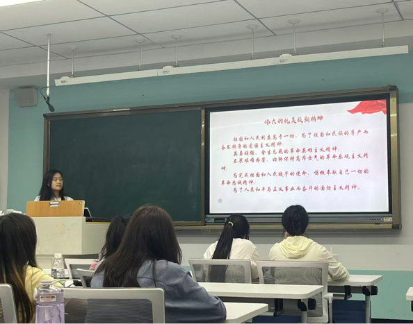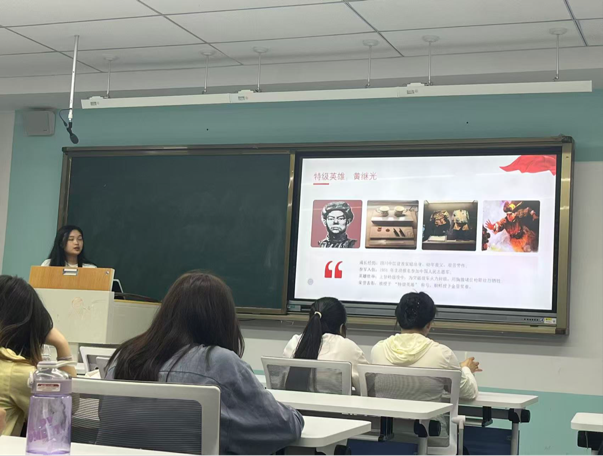 此次党课由两位优秀学生党员主讲,以青年视角与鲜活案例,为入党积极分子带来一场别开生面的精神洗礼。学生党员胡竞予以“不朽的丰碑:黄继光的永恒瞬间”为主题,带领大家重温英雄事迹,感悟先锋力量。她用详实的历史资料和生动的语言向大家讲述了黄继光的成长历程。还从多个维度深入剖析了黄继光精神的内涵与时代价值。这些伟大的精神,如璀璨星辰照亮历史天空,也为新时代的我们指明前行方向。