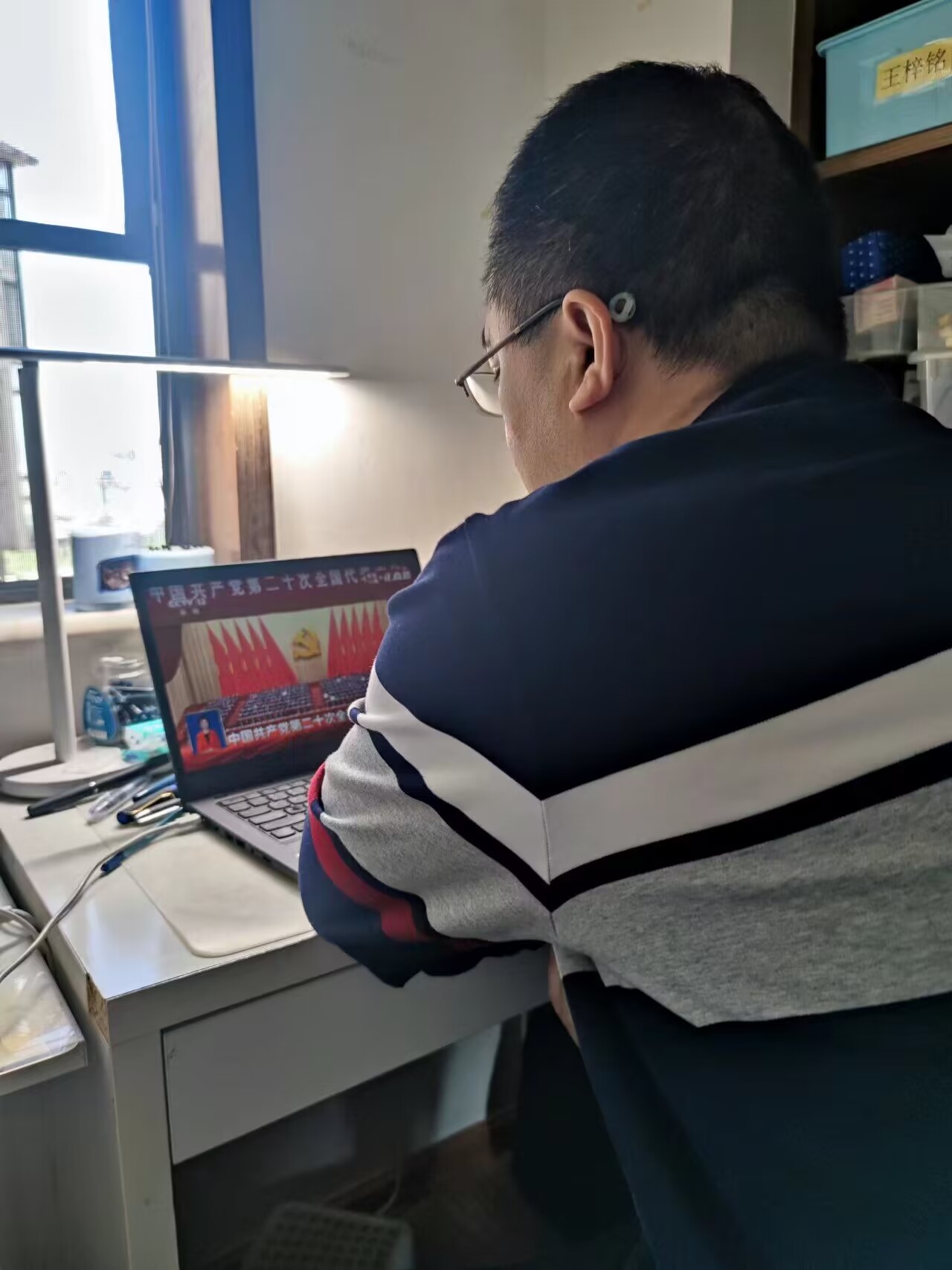 在认真聆听习近平同志代表十九届中央委员会向大会作的报告后,全体支部党员分享自己的感受,将各类金句分享在支部微信群中,纷纷表示要更加紧密地团结在以习近平同志为核心的党中央周围,全面贯彻习近平新时代中国特色社会主义思想,深刻理解“两个确立”的重要意义,坚决做到“两个维护”,弘扬伟大建党精神,坚持立德树人根本任务,努力培养好社会主义事业的建设者和接班人,在全面建设社会主义现代化国家、全面推进中华民族伟大复兴的新征程中贡献自己的智慧和力量。