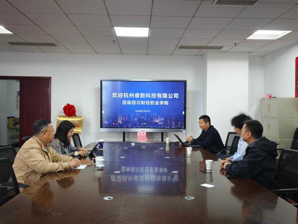 2026年3月25日上午,金融学院与阿里云生态高新技术企业杭州睿数科技有限公司创始人吴总一行座谈,双方就高职金融专业群数字化改造、AI赋能人才培养开展校企合作交流。金融学院院长叶剑明、副院长李琳参加座谈。