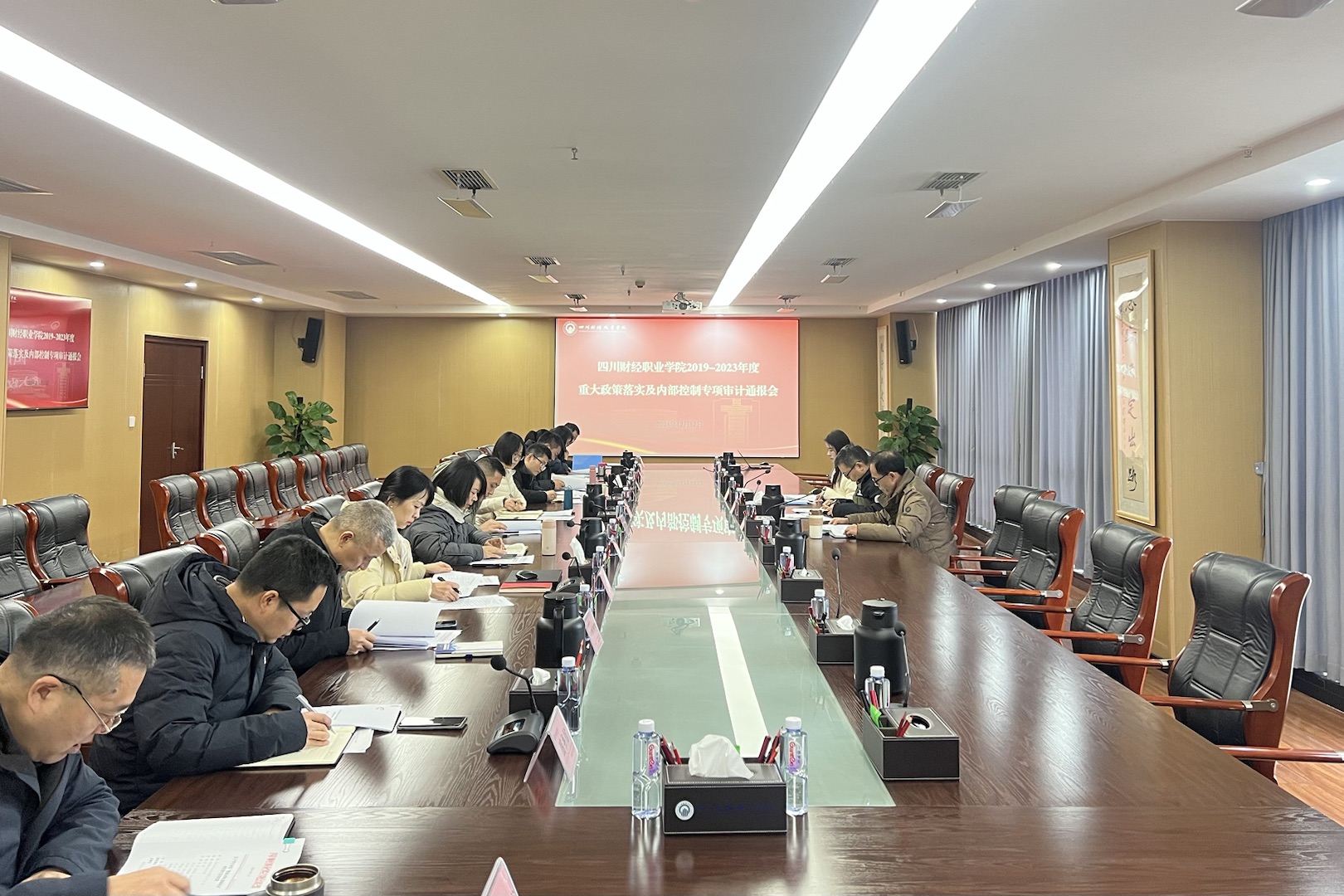 12月12日上午,学院召开2019-2023年度重大政策落实及内部控制专项审计通报会,审计组成员及相关责任部门负责人参加会议。学院院长符刚出席会议并讲话。