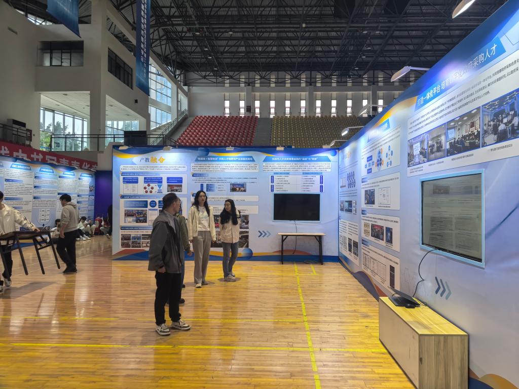 在阳光体育馆展厅内,“产教融合”“产学研用创新”“数字化采购人才培养”等板块以图文并茂的形式依次铺展,通过丰富案例、详实数据与实景化展示,生动呈现制造服务业与职业教育深度融合的创新实践图景。纪检监察办公室教职工们驻足于各展区前,仔细研读展板内容,围绕产教融合新路径、人才培养新模式、职业教育服务产业发展的典型案例等内容交流探讨,深入探寻职业教育改革与产业发展同频共振的实践逻辑。