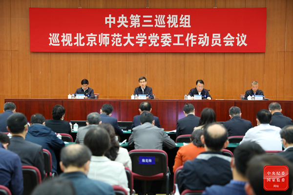 2021年5月,中央第三巡视组巡视北京师范大学党委工作动员会召开。图源中央纪委国家监委网站
