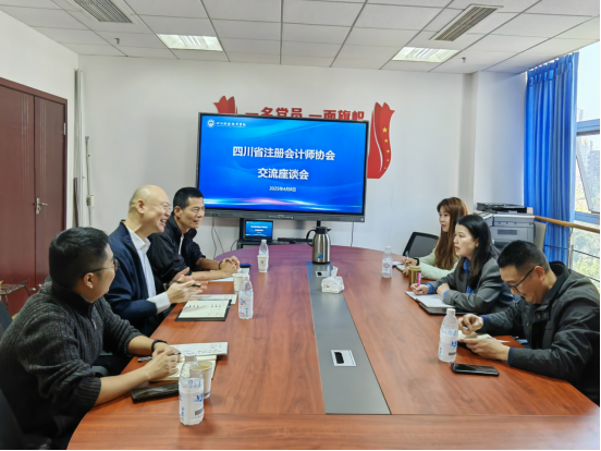 为深化产教融合,推动四川省会计高端人才的继续教育,4月8日四川省注册会计师协会副秘书长杜船等一行人到我院交流座谈。学院党委委员、副院长李代俊、继续教育学院院长刘瑶、继续教育学院副院长黄勇陪同考察,双方围绕培训合作、人才培养及社会服务赋能展开了深入探讨。