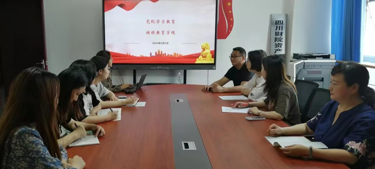 6月7日,继续教育学院党支部在明德楼805开展主题党日活动,持续开展党纪学习教育研讨。