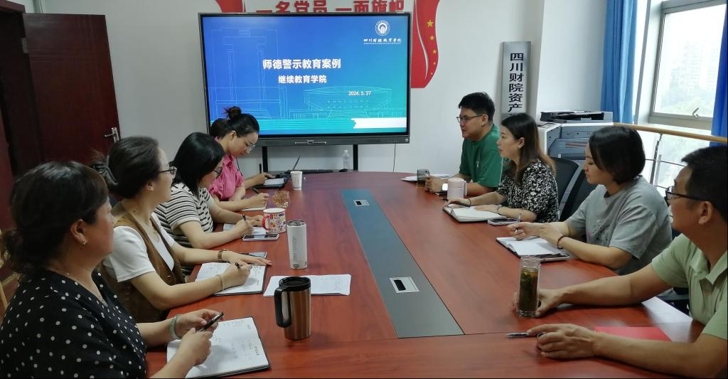 研讨会上,支部书记刘瑶传达了中共川财职院党纪学习教育工作专班关于党纪学习教育活动的近期学习要求,本次重点开展警示教育会,通过观看警示教育片和通报教育系统(本单位)违纪典型案例和纪律审查工作情况深刻剖析,部门同志要以案促学、以案促改保治。