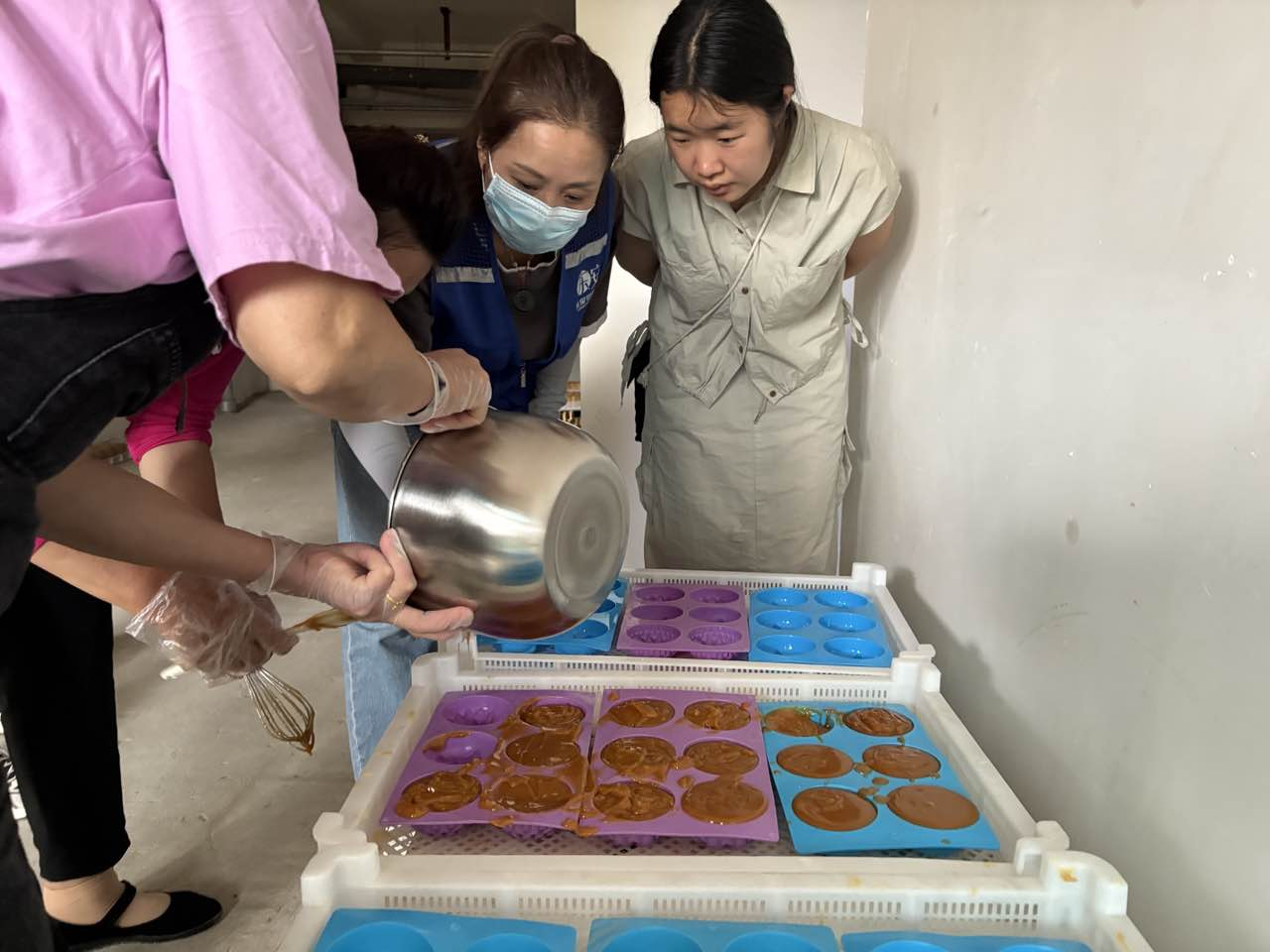 为深化校地党建共建,助力乡村振兴,继续教育学院党支部与聚和社区党委联合开展的以“校地‘香’约,‘皂’亮乡村”为主题的共建活动于2025年4月7日在聚和社区可持续生活空间举行。继续教育学院党支部书记刘瑶、纪检委员黄勇等支部党员一行9人参与,聚和社区党委副书记蒋晓燕、党委副书记陈焰、社区工作人员、社区下设支部书记和部分网格员陪同参加。
