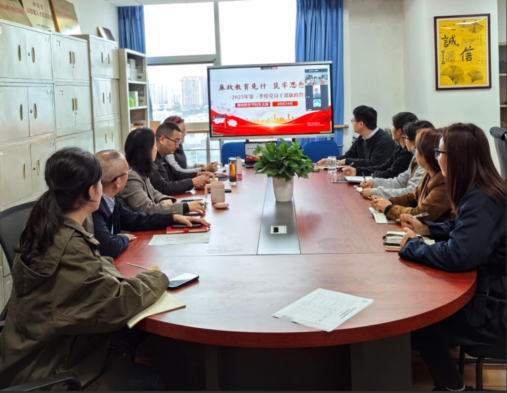 为贯彻落实全面从严治党和党风廉政建设要求,持续加强廉政教育,结合学校《关于开展2025年三季度党员廉政教育的通知》要求,继续教育学院党支部于2025年10月24日在明德楼814会议室召开本支部第三季度党员廉政教育学习工作,会议由支部书记刘瑶主持。