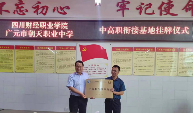本次调研还夯实了校地合作的落实,在朝天职业中学授牌“中高职衔接基地”。调研组一行参观了朝天职中布局,在座谈会上听取朝天教育局、朝天职中汇报朝天职中最新发展及诉求,今年要完成中专达标验收工作,新增会计实务和智慧康养专业,希望得到川财职院的指导。肖兆飞介绍了川财职院发展历程,针对朝天职中发展现状,强调我校要加强朝天职中师资培训,迅速提高师资能力;要建立学生升学模式,力争“3+2”的落实;要发挥我校智力效能,推荐多到优质中职学校取经学习。