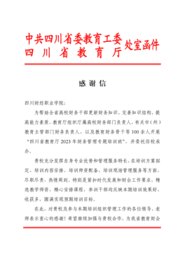 习近平总书记在全国教育大会上强调,要提升教育服务经济社会发展能力。学校积极发挥专业优势,为区域、社会经济发展服务。面向省直机关单位财务干部、地市州行政事业单位基层财务干部、三州民族地区乡镇财务干部等单位开展培训,同时在职业技能培训、省外培训项目、企业类培训、基层财政干部能力素质提升培训线上课程方面取得了重大突破。截止2023年11月,我院共计承接培训班80期,培训29646人次,社会培训服务收入到账额首次突破1800万元,收到四川省委统战部、四川省教育厅、四川省公安厅交通警察总队、国家税务总局成都市税务局、广元市教育局、达州市财政局等单位向我院发来的感谢信,感谢我院在承办干部培训班过程中尽职尽责,热情周到,学员收获多,圆满实现预期培训目标。