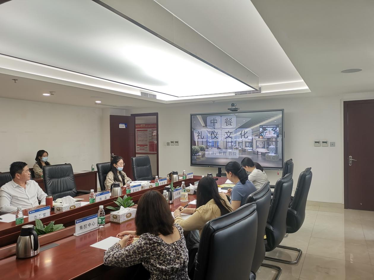 为提升华能新能源集团员工礼仪礼节的能力,使员工掌握用餐、接待、言谈方面的礼仪注意事项,我院诚邀西南石油大学马克思主义学院副院长,中国国际公共关系协会理事,全国第九届残运会暨第六届特奥会志愿者礼仪培训负责人林莉副教授于6月4日到华能新能源集团总部为其讲授“中餐礼仪文化”课程,来自华能新能源集团的30名员工参加本次培训。本次培训设有线上分会场,线上直播实时在线学员达50人。