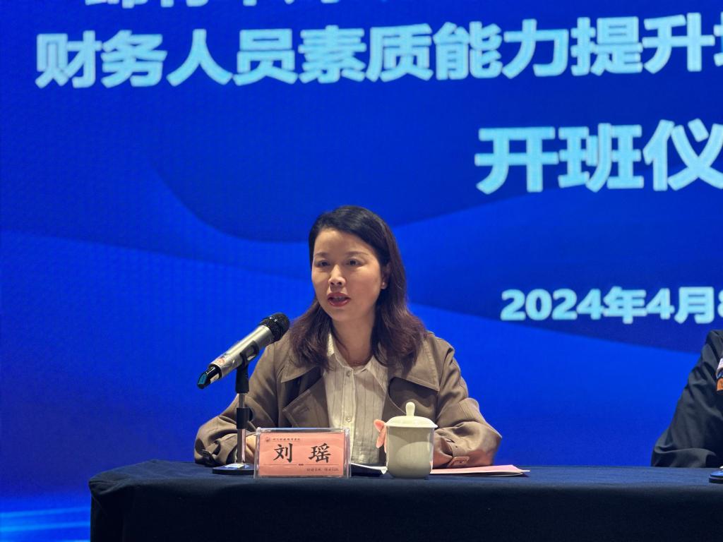 刘瑶在致辞中代表学校对绵竹市财政局培训班的学员的到来表示热烈的欢迎并向学员们介绍了学校的发展历程、继续教育学院的办学理念和优势,着重介绍了本期培训班的定制特色,她希望学员们能在学习中学有所获、学有所悟。最后就培训纪律、培训安全等作了强调,要求学员们严格遵守,确保人身安全,珍惜此次学习机会。